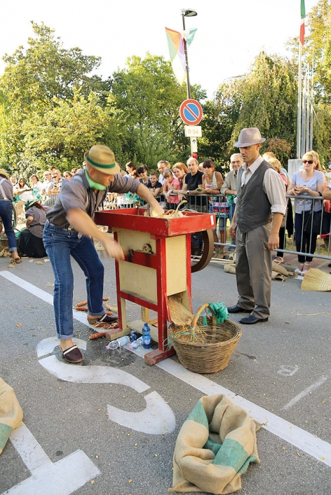 Con il fischio dello storico vapore della trebbiatura comincia la sfida tra le quattro squadre che rappresentano le contrade storiche di Castelminio: a Fornasa, i Marta, e Motte e a Seolara de Santa Brigida ognuna con il suo foulard del colore tradizionale. In pochi attimi Castelminio ritorna ad essere Brusaporco (vecchio nome del paese) dove zoccoli, cappelli di paglia e cesti intrecciati a mano riportano alla mente quel paese che tanto raccontavano i nostri nonni.